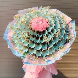 Lẵng hoa tiền 50k màu hồng siêu đẹp